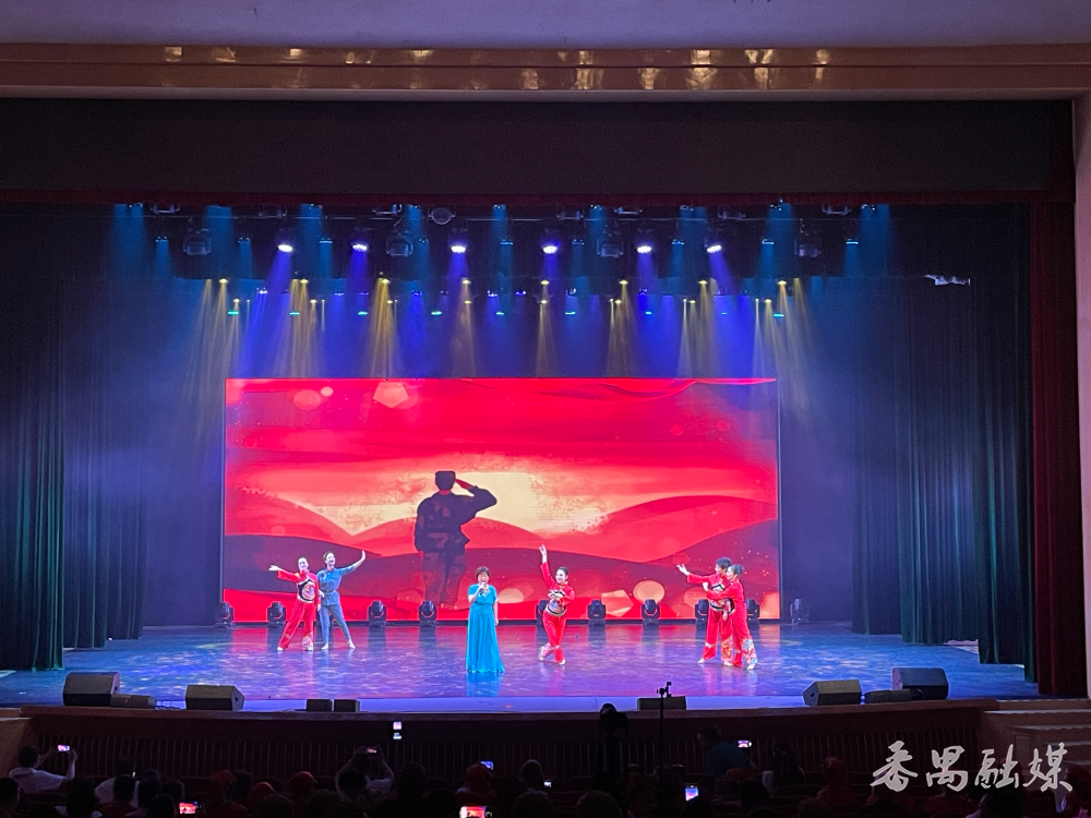 本次歌舞汇节目丰富多元。民乐合奏《喜洋洋步步高》现场奏乐,热闹开场;舞蹈《拥军秧歌》活力洋溢,传递军民鱼水情;《沂蒙颂》《心中的歌献给解放军》等歌舞真挚动人,唤起红色记忆;京歌《红梅赞》、葫芦丝《半壶纱》尽显曲艺与器乐的独特魅力……30余个节目中,既有《祖国万岁》《我爱你中国》等礼赞祖国的经典,也有《上海谣》等富人文特色的篇章,现场奏乐与视频交织,艺术氛围分外浓厚。